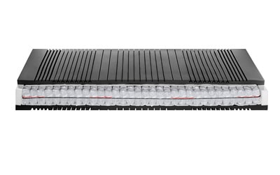 Boxspringbox: Der Kern besteht aus einem Tonnentaschenfederkern mit 5 Komfortzonen. Die Federn sind thermisch veredelt, d. h. die molekulare Stahlstruktur regeneriert sich nach dem Drehen der Feder durch Erhitzen. Dadurch sind die Federn widerstandsfähiger und haben eine bessere Elastizität. Die Boxspringboxen werden aus hochwertigem Holz hergestellt. Eine durchgehende Holzplatte unterstützt den Boxspringkern. Jede einzelne Feder wird optimal gestützt. Einschnitte in dieser Platte sorgen für eine perfekte Luftzirkulation.